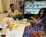 Ghanaische Unternehmerinnen gründeten einen Verband für Mehle, Stärke und Tiefkühlprodukte. Drei der fünf ghanaischen Unternehmerinnen – Felicia Mensah, Zeenatu Adams und Alberta Asare – trafen sich zur gemeinsamen Arbeit an ihrem neuen Projekt: dem Verband ShePAG (She Export Processes Association Ghana). Gemeinsam mit Langzeitexperten Christopher Mars definieren sie die Zielsetzung und inhaltlichen Schwerpunkte des Verbands.