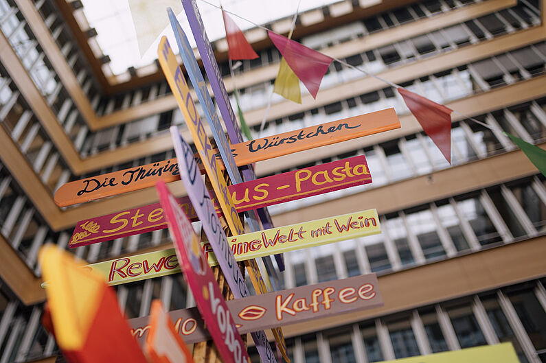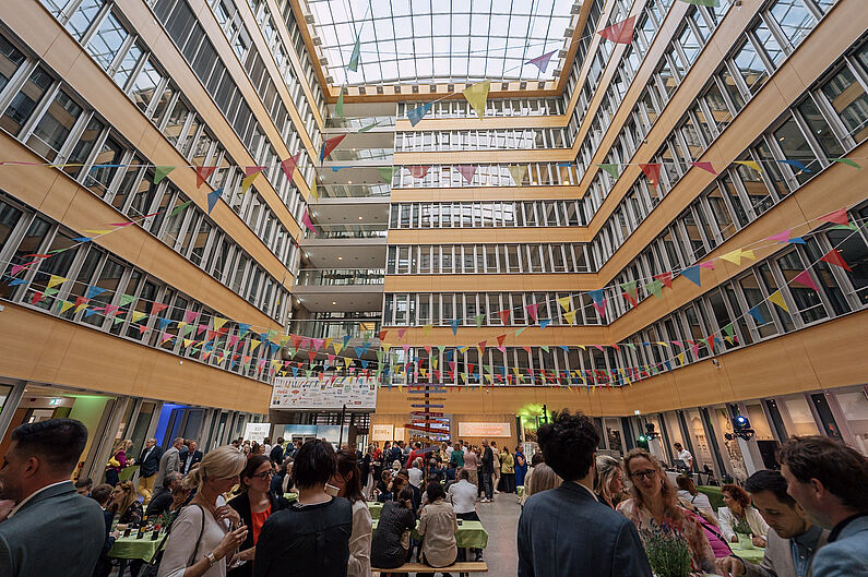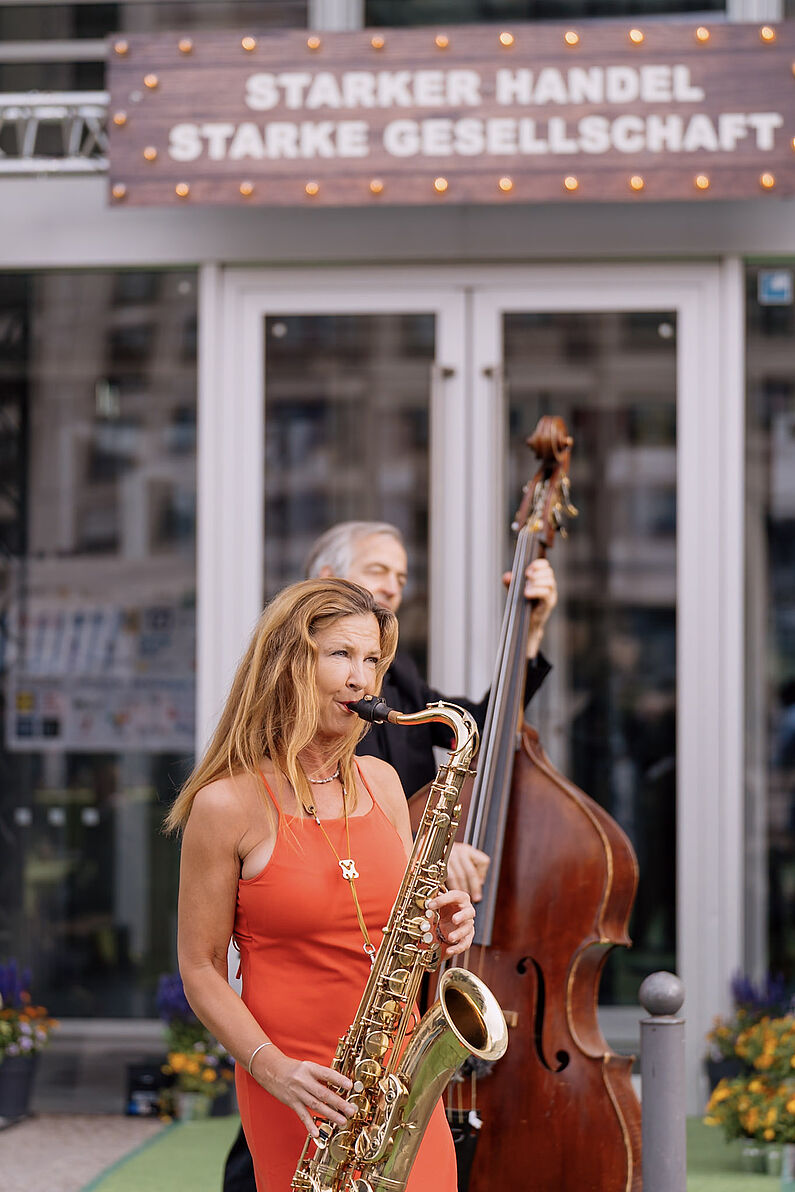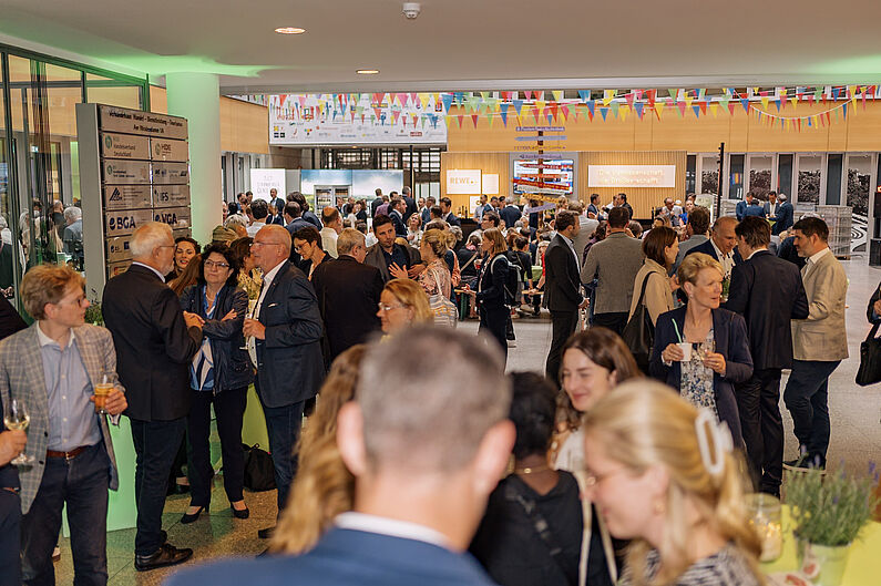 Unter dem Motto "Starker Handel, starke Gesellschaft" zeigten Aussteller und Sponsoren aus Außenhandel, Großhandel und Einzelhandel die Vielfalt ihrer Wirtschaftsstufe. Die vielen Gäste genossen das überraschend trockene Wetter im Außenbereich oder tanzten zur Musik im Atrium.