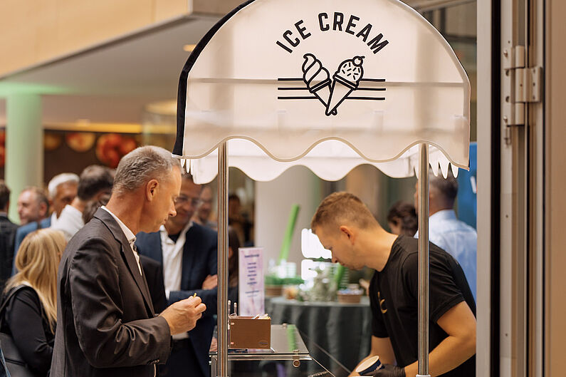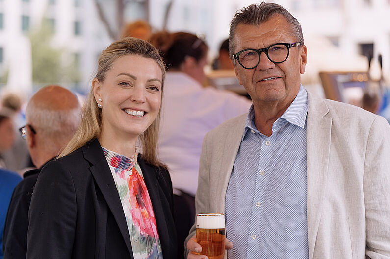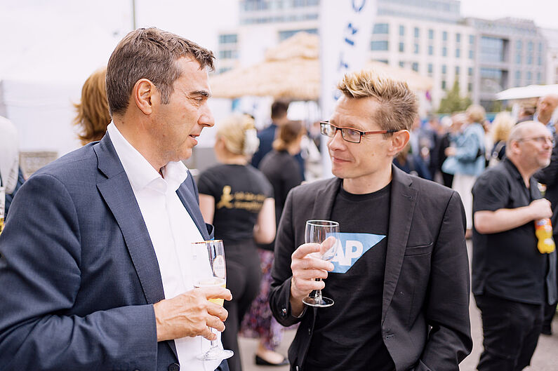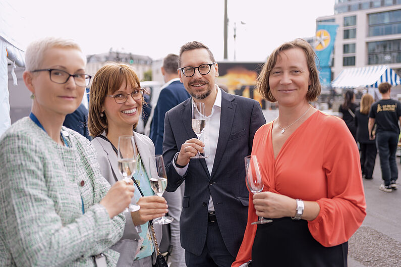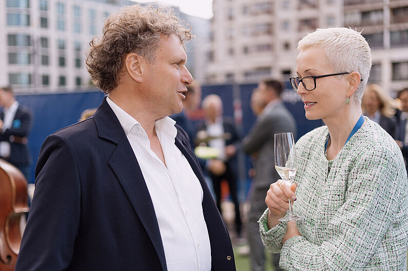 Bei einer anschließenden Abendveranstaltung direkt an der Spree genossen die Gäste das spätsommerliche Wetter und ließen den Abend mit leckerem Essen, guten Gesprächen und einigen Drinks mit Blick auf die Oberbaumbrücke ausklingen.