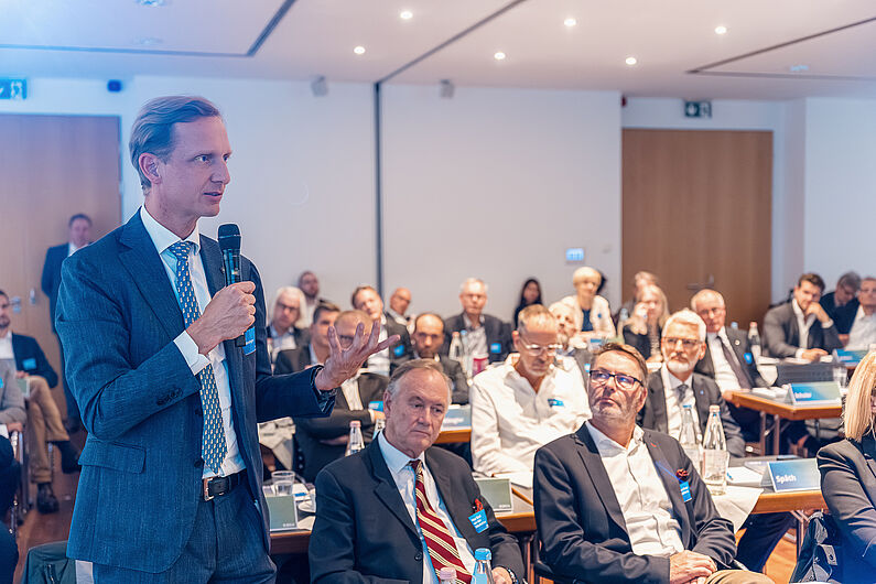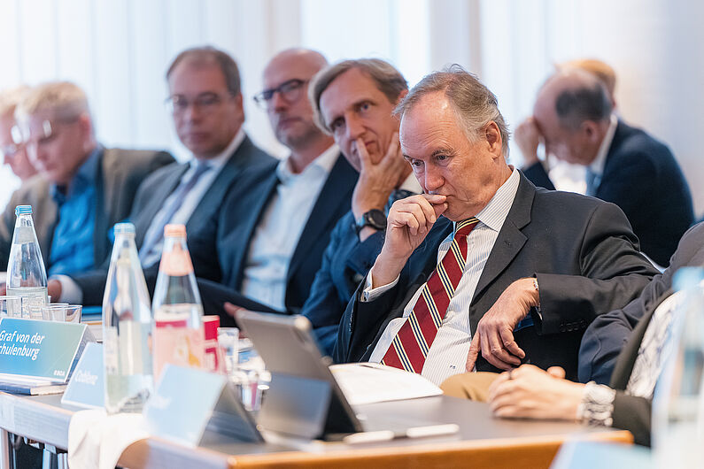 Bei intensiven Beratungen tauschten sich die vielen Gäste mit Präsident Dr. Dirk Jandura über die aktuelle wirtschaftliche Lage und die Zukunftsaussichten der Wirtschaftsstufe aus. Auch Ökonom Prof. Lars Feld gab einen wissenschaftlichen Einblick in die derzeitige Situation des Wirtschaftsstandortes Deutschland.