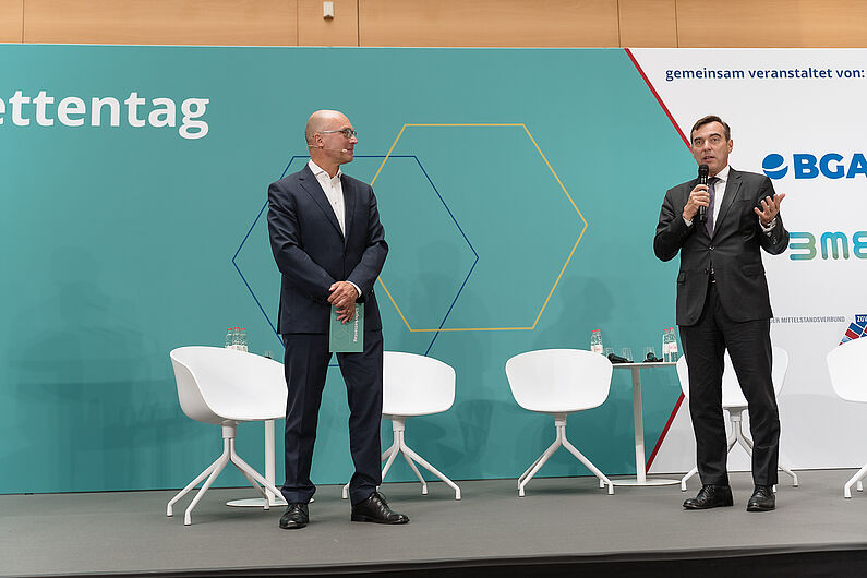 Beim Unternehmertag 2024 konnte der BGA die Spitzen der Ampelregierung als Speaker begrüßen. Die über 300 Gäste hörten und diskutierten die Redebeiträge, die sich vor allem um Entbürokratisierung und die Stärkung des Wirtschaftsstandortes drehten.